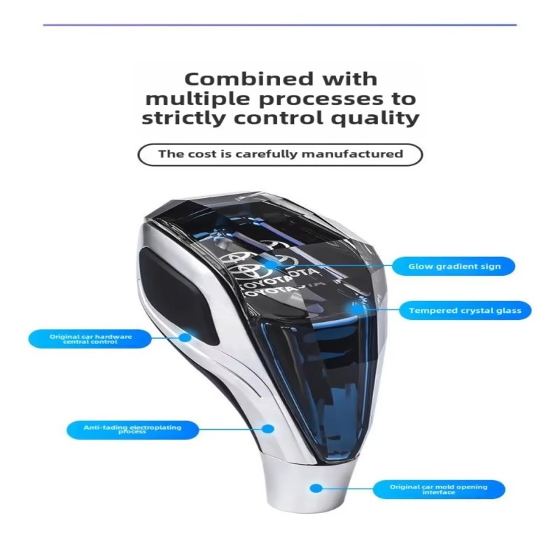 এইটা এক ধরনের আপগ্রেড গিয়ার নোব/কভার যেটাতে ক্রিস্টাল ফিনিশ + LED গ্লো থাকে। টাচ করলে লাইট অন/চেঞ্জ হয়, আর গাড়ির কেবিনে প্রিমিয়াম অ্যাম্বিয়েন্ট ফিল এনে দেয়। Toyota লোগো গ্লো করার কারণে রাতেও লুক হয় ক্লিন, স্মার্ট এবং ইউনিক।